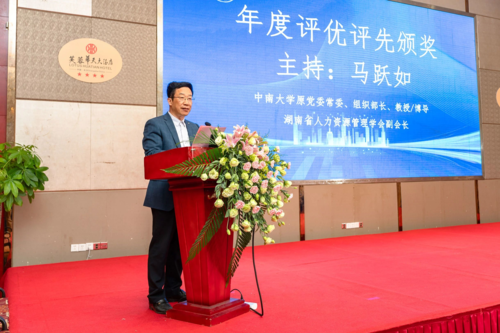 中南大学原党委常委、组织部长、湖南省人力资源管理学会副会长马跃如主持评优评先颁奖环节